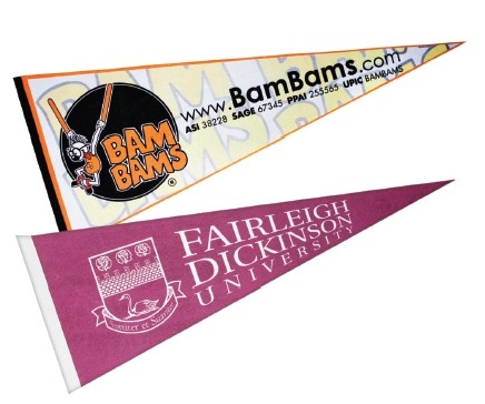 Printed Felt Pennants are a classic fan favorite. Commemorate a special business event, church rally, school spirit, school graduation or sports team with these quality printed felt pennants. Our felt pennants, college pennants, sports team pennants and elementary school pennants are available in two pennant sizes. Personalized with your custom printed advertising name, logo or school mascot. 12″ W x 30″ L